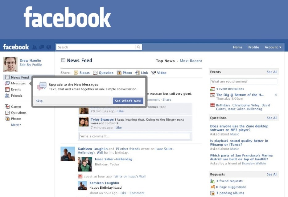 "ඊමේල් භාවිතය අවසන් කරන්නා" යන අන්වර්තනාමයෙන් හදුන්වා දෙන්නට පෙලබවන මට්ටමේ හදුන්වාදීමක් ලෙස කතා බස් කෙරෙන ෆේස්බුක් හි නවතම පනිවිඩ හුවමාරු සේවාව ගැන විව්ධ මතවාද නිරන්තරයෙන් සටහන් වෙමින් පවතිනවා. යාහු නැතිනම් ජිමේල් වැනි සේවාවන්ගේ අවසානය මෙයද? ප්රශ්න කරමින් පලවන මතවාද මෙන්ම, කවදත් හානිකර මෘදුකාංග ගැන වැඩි අවදානයක් යොමු නොකල ෆේස්බුක් සේවාව මෙම නව සේවාවත් හානිකර මෘදුකාංග පතුරවන්නන්ගේ පහසු ගොදුරක් වේවිද? මතයත් පලවී තිබුනා. කෙසේ නමුත් මීට පිලිතුරු ලෙස සටහන්ව තිබුනේ භාහිර ආරක්ශක මෘදුකාංග සපයන්නෙකුගේ සහය ඔවුන් ලබගෙන ඇති බවයි. දැනට පවතින සාම්ප්රදායික ඊමේල්