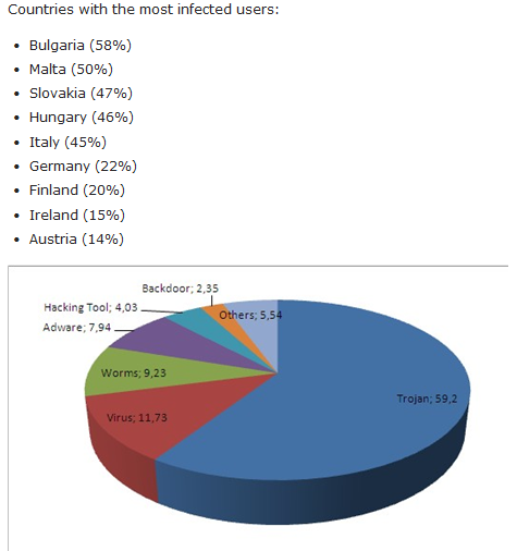 පසුගිය දිනක නිකුත්වූ දත්ත සටහනකට අනූව ලොකය පුරා සයිබර්මය අනතුරුවල ලක්වන්නන්ගේ ප්රතිශතයන් පහත දැක්වෙන සේ උනා.