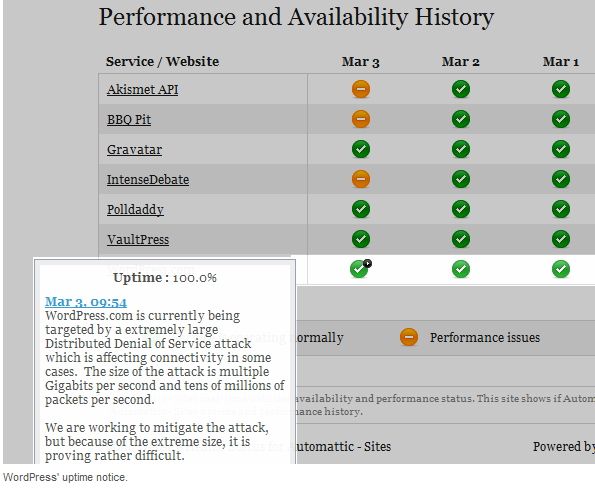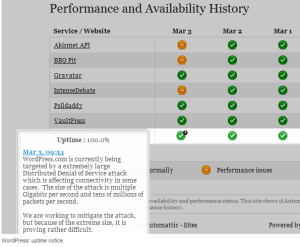 වර්ඩ් ප්රෙස් වෙබ් අඩවිය දරුනු මට්ටමේ සයිබර් පහරදීමකට ලක්ව ඇතිබවට වාර්තා වෙනවා. පැවසෙන ආකාරයට සුවිශේෂී බ්ලොග් අඩවි ඇතුලු මිලියන 18 කට ආසන්න බ්ලොග් අඩවි ප්රමානයක් තාවකාලිකව අඩපන කරන්නට මෙම පහර දෙන්නන් සමත්ව ඇති බවයි වැඩිදුරටත් සටහන් වෙන්නේ.තම ආයතනයේ හය වසරක සේවා කාලයතුල සිදුවූ දරුනුතම ප්රහරය හැටියටත් දේශපාලනික පදනමක් ඇතිව මම ප්රහාරය දියත්වන්නට ඇති බවට තමන් විස්වාස කරන බවටත් ප්රකාශවෙනවා.
