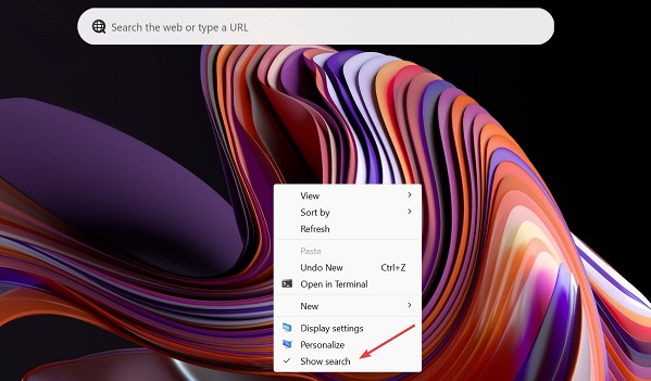 Windows 11 build 25120 සංස්කරනය සමග permanent search bar එකක් desktop වලට හඳුන්වා දී තිබෙනවා. Windows Insiders වෙතට එන නැතිනම් පෙර සංස්කරනයක් වන මෙහි දී Microsoft Edge සමග Bing සෙයුම් යන්ත්රය සමග මෙම සෙවුන් පහසුකම පැමින තිබෙනවා.දැනට සීමිත Windows Insiders ලා පිරිසක් අතර මෙම අත්හදා බැලීම සිදුවන අතර අවශ්ය නම් අනෙකුත් භාවිතාකරන්නන්හටද force-enable එකක් ඔස්සේ මෙම අංගය අත්හදා බලන්නට හැකි වනු ඇත.