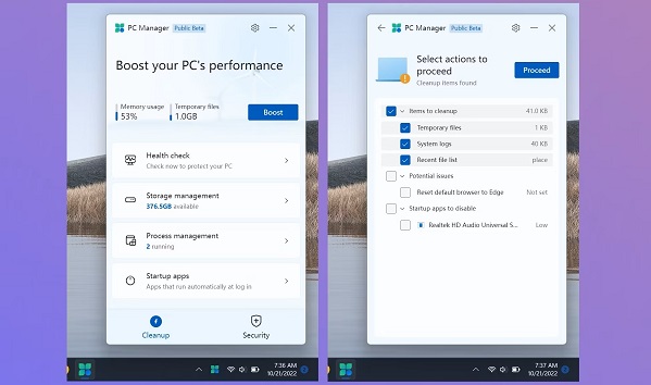 Microsoft ආයතනය මේ සදහා මෑතකදී නිකුත් කල මෘදුකාංගයක් වන්නේ PC Manager නම් මෘදුකාංගයයි. මෙය පරිගණකයේ තැන්පත් වන අමතර ගොනු ඉවත්කර දෙන්නට මෙන්ම එය ආරක්ශිත වේගවත් එකක් ලෙසට තබා දෙන්නට කටයුතු කරන අතර එහි ‘public beta’ සංස්කරනයක් Chinese Microsoft website ඔස්සේ ලබා ගැනීමේ හැකියාව ලැබී ඇත. එහි වන අංග අතර ‘Boost your PC’s performance’ මෙන්ම ‘Health check’ හා ‘Storage management’ තුල වන ‘Deep cleanup’ හා ‘Manage large files’ පලදායී සහයක් ගෙනෙන බවට පෙනෙන්නට තිබේ. එසේමුත් ‘Reset default browser to Edge’ සමහර විට ඔබ මග හරින්නට කැමති අංගයක් විය හැකි මුත් ‘Process management’ tool එක නම් memory background processes ආදිය පහසුවෙන් End කර දන්නට සහය වනු ඇත. තවමත් පෙර සංස්කරණයක් බවද අමතක නොකල යුතුය.